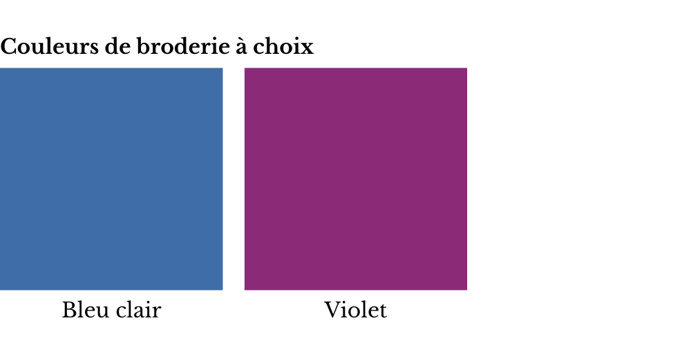 Cette chemise peut être brodée en bleu clair ou violet.