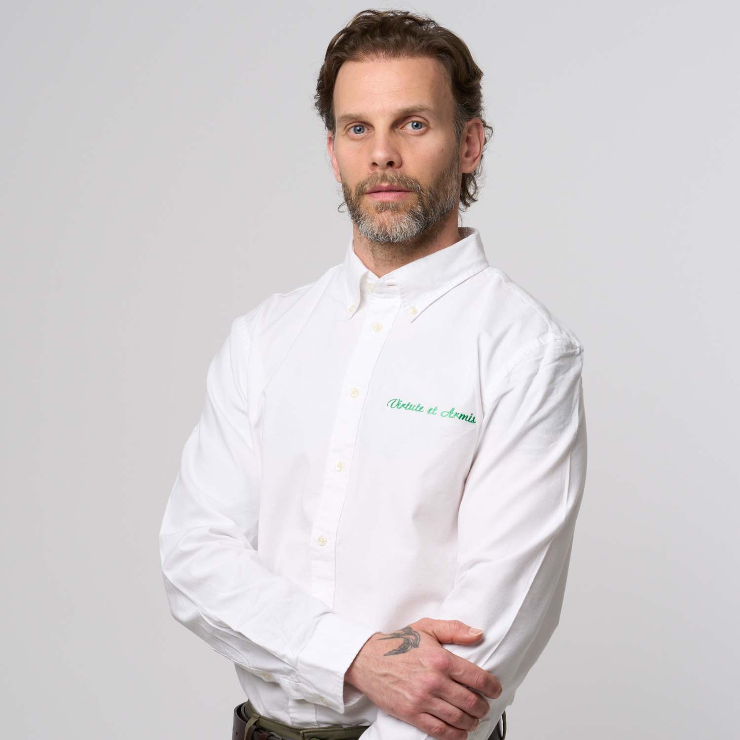 Chemise Oxford avec broderie petit format (3,8 cm de largeur X 5,5cm de hauteur)